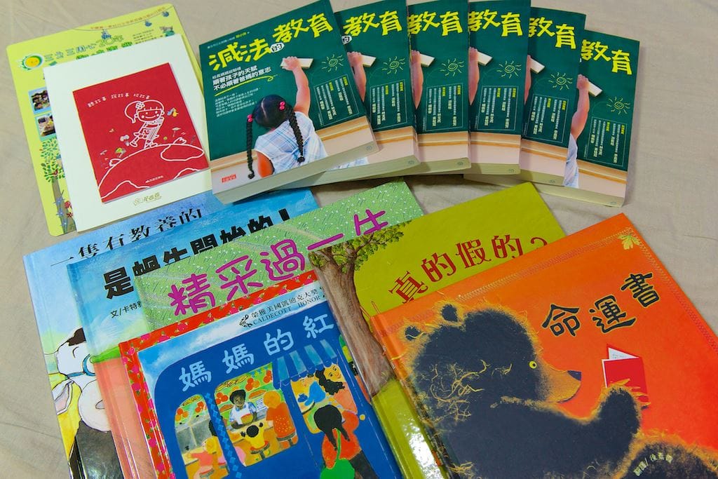 感謝花婆婆繪本台中健行館贊助芊芊親子尾牙六本相當棒的精裝故事繪本以及六本減法教育教養書籍,另外贈送150張花婆婆墊板給每個參加的家庭。