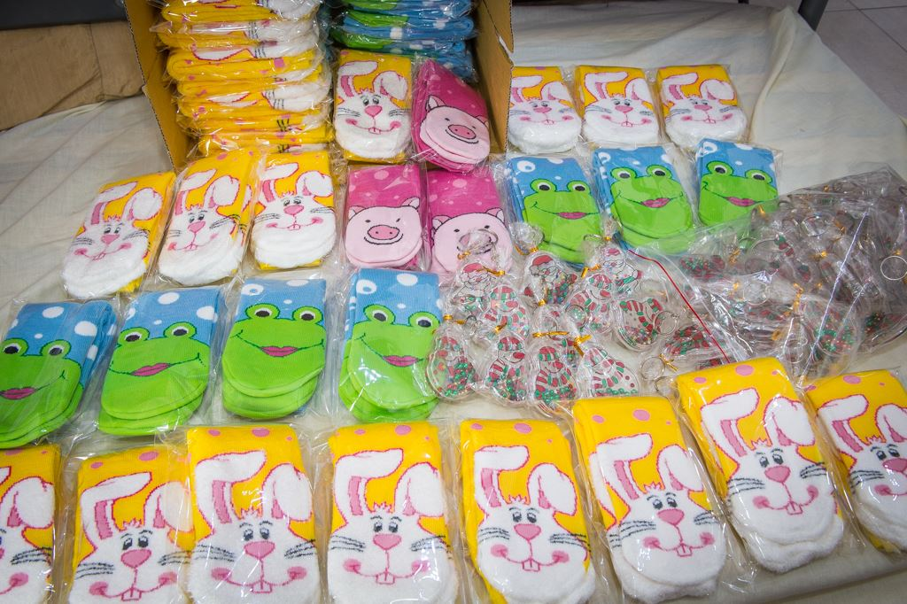今年要『第三度』感謝楷叡的爸爸、媽媽和阿嬤,繼前年贊助66雙襪子後,以及去年百雙襪子的贊助,今年代表彰化社頭『高鋒針織實業股份有限公司』贊助兒童襪55雙,這次的襪子後又保暖,超適合冬天穿,以及聖誕節雪人應景鑰匙圈45個,總數100份,連續三年的贊助實在是太感動了,這些禮品都會在親子尾牙摸彩中抽出。