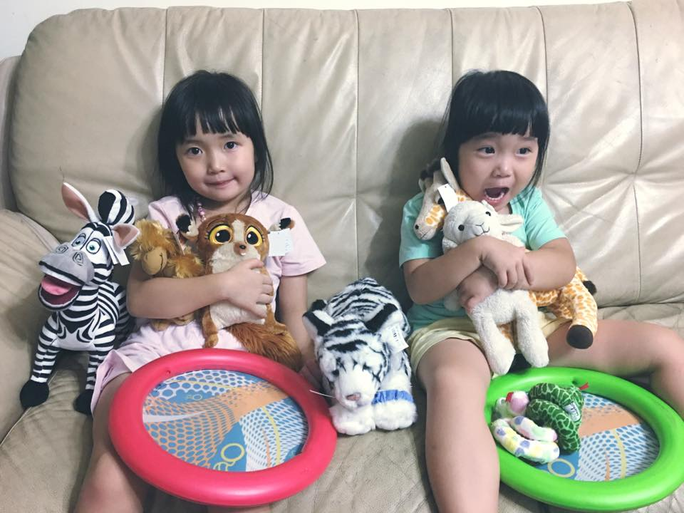 七天沒見的兩個小女兒,看到我帶回來的娃娃就滿足了^^…