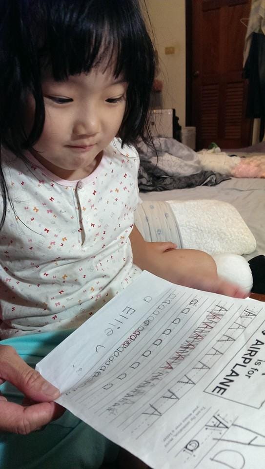 上中班後終於有作業了,很驕傲的跟妹妹說她要寫作業了,不過,寫完竟然還很滿意的自己在每張上面都蓋上好棒印章,老師看到應該會昏倒吧…XD