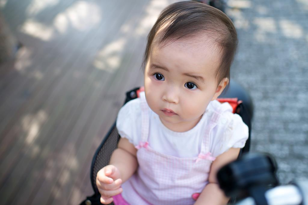 不甘寂寞的亭亭一早六點多醒來發現我們都還在睡,於是就往右邊爬…