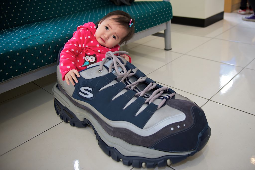 亭亭:喂!你確定這是鞋子不是睡袋,我不是姚明啦,放我出去!