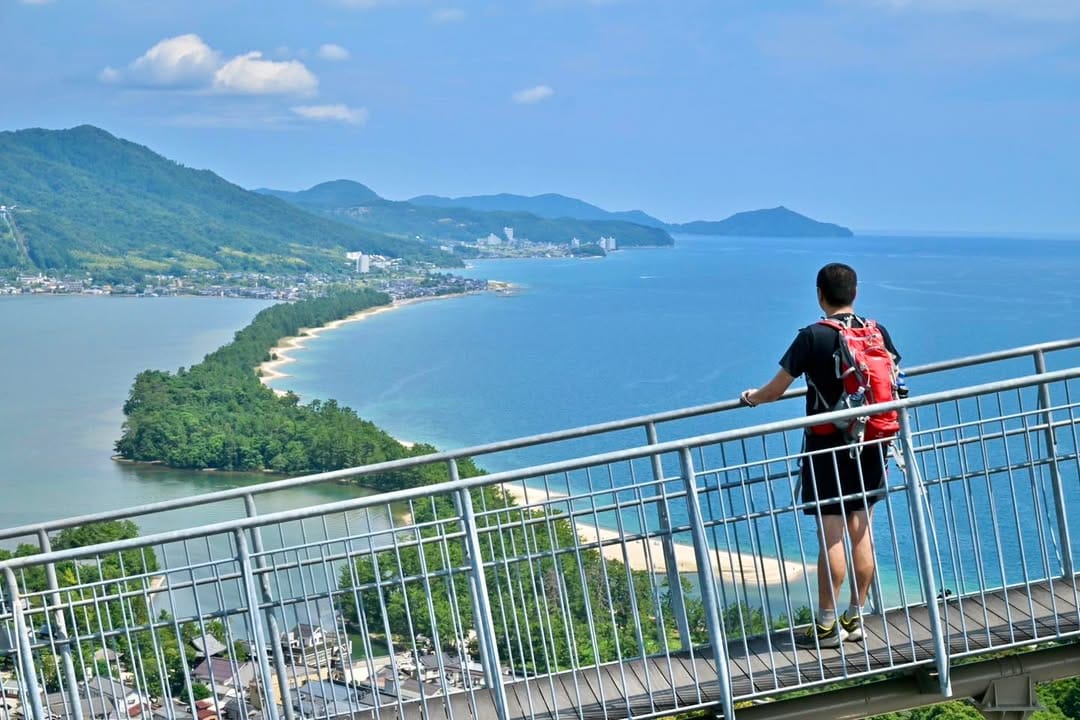 天橋立跟松島一樣都是地殼推擠作用形成的天然景觀,不同的是這裡是沙洲地形,上面滿滿有8000棵左右的日本黑松,而其名字的由來,據說從南北兩端的高處,背對沙洲並低頭由大腿兩側中間往後看,此時藍色的大海如同天空,沙洲猶如地面往天空延伸的橋樑而得名,而在南端的天橋立View Land所看到的樣子就如同飛龍在天一樣,所以又叫「飛龍觀」。