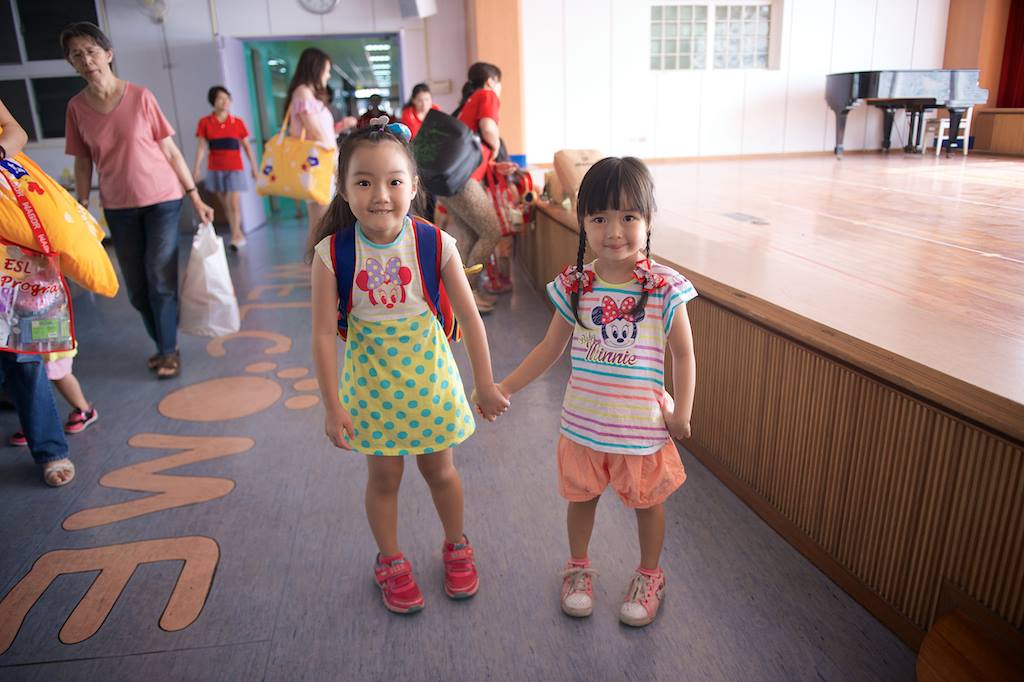 到底誰陪誰上學?亭亭大喇喇的牽著姊姊,芊芊駝背還流著鼻涕 >:o