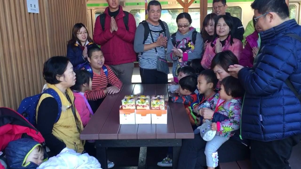 又是愉快的慶生囉,地點還是在火車站,哈哈,很有背包旅遊的fu,到處都可以幫壽星慶生唱歌,這次挑選的是長野有名的水果蛋糕,每個家庭都有,雖然小小一塊但卻有滿滿的心意,能一起旅遊已是得來不易的緣份,能在旅途中得到旅伴的生日祝福更是別具意義,這次出國期間正好是女兒亭亭的生日,看到她也有阿姨特地送過去的公主蛋糕,那開心的模樣讓爸爸也跟著開心,爸爸有帶楓葉和銀杏回去給妳們喔^^