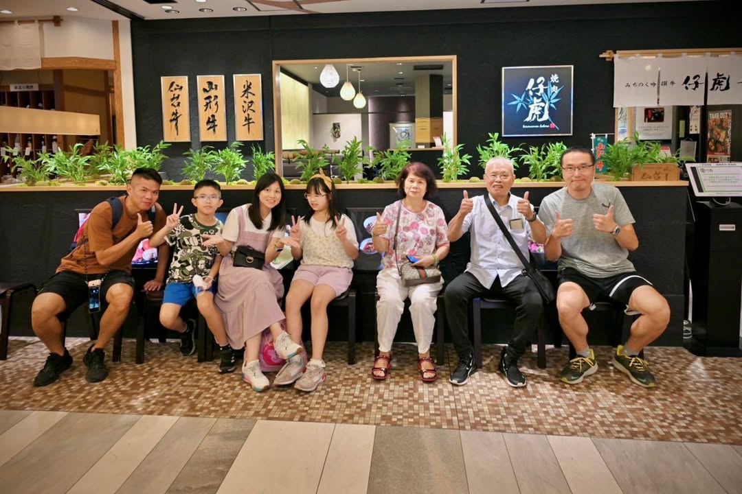這些年很多團員都會謝謝我們在旅行中照顧他們、讓孩子玩得很開心,但其實我也受到許多團員的照顧,所以這次阿伯再次報名參加旅行,我就許下心願一定要請他們吃一次飯,原本想的是善治郎牛舌,結果昨晚有前一團的家長推薦我更優的米澤牛燒肉,二話不說直接直上和牛燒肉。