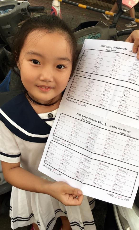 大小姐今天放學很得意,原來是小學的第一次拼字考試spelli…