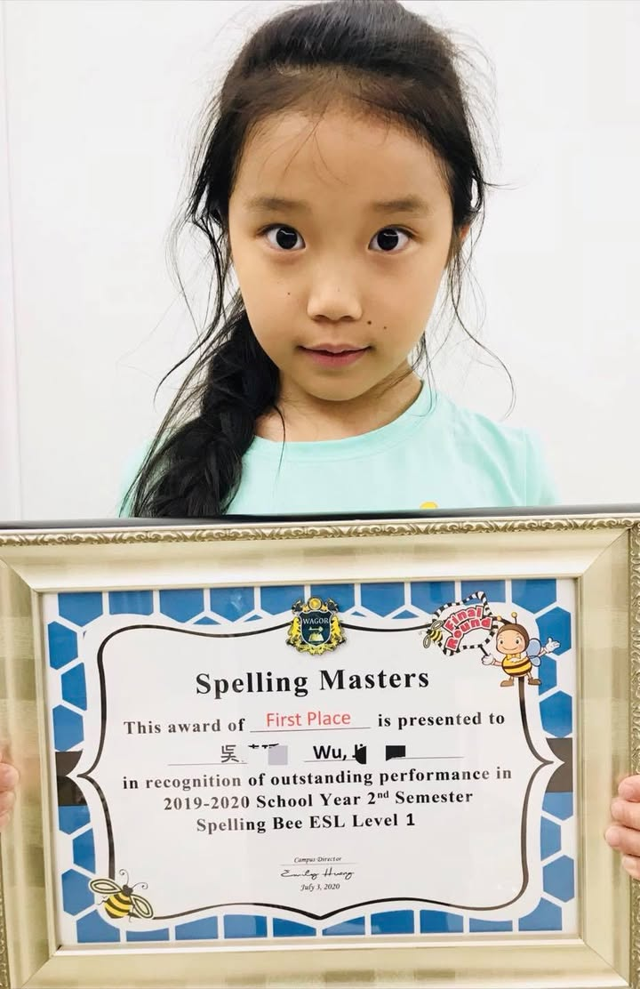 好棒的小瑀,這學期結束前還拿到英文拼字比賽冠軍,厲害厲害!