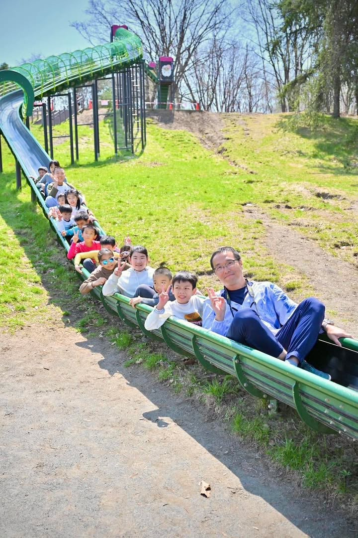 旅程中孩子玩樂受傷,馬上有家長提供自己的推車借用;孩子們玩樂時,家長們一邊看著孩子,一邊有共同話題的聊天;溜滑梯時我跟優哥有如巨星般,一直被小孩呼喚陪同;有獎徵答時,小孩踴躍參與答題的神情……,都讓我覺得這一團北海道團是成功的。
