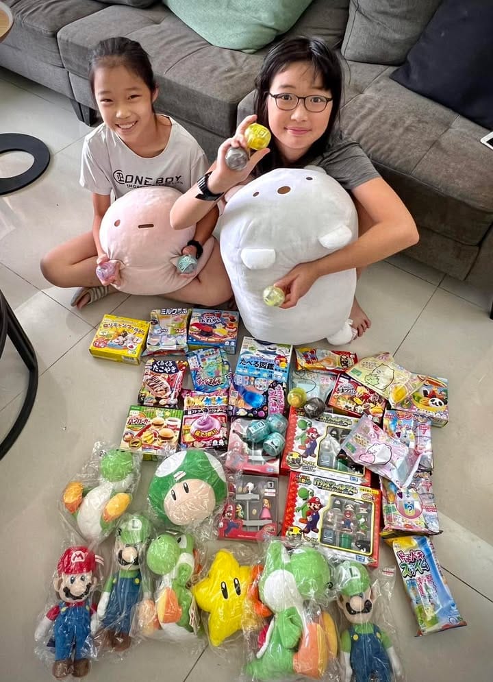其實帶團時有機會逛商店時,我心裡還是繼續為下一團在思考,所以一看到瑪利歐公仔和娃娃時立刻掃貨了好多,對我來說,能用獎勵和讚美孩子的方式帶領他們,這也難怪每一團我所帶領的旅行,小孩的每一天都是充滿驚喜和期待,我就是用這樣的心想帶好每一趟親子旅行。