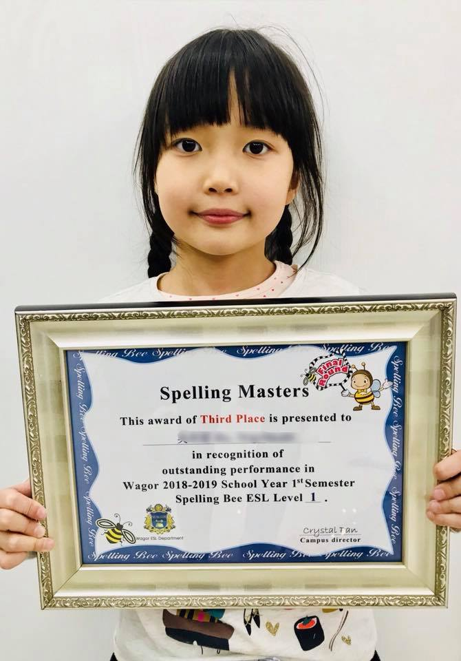 恭喜亭亭得到一年級英文拼字比賽第三名,頭銜為拼字大師,繼續加…