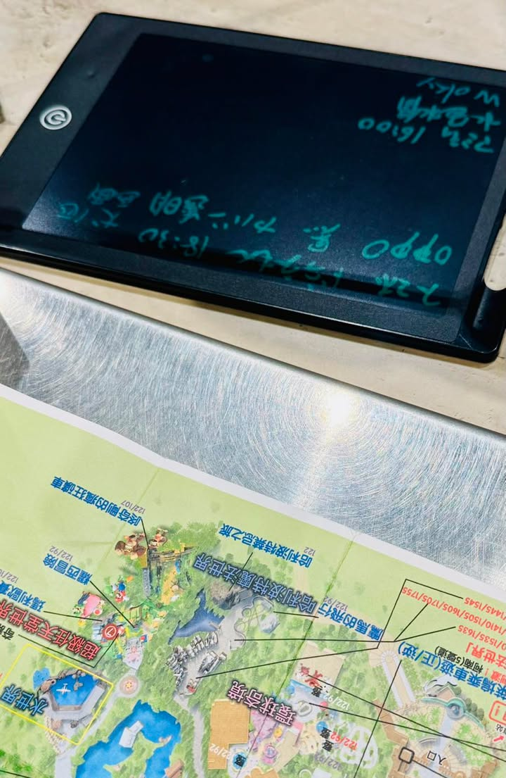 感覺最近很常來遺失物中心報到,晚上剛陪玩完好萊塢正向+逆向兩次的雲霄飛車後,馬上飛奔到此找團員掉的東西,直接把攻略地圖打開指出遺落地點,很快收到好消息。