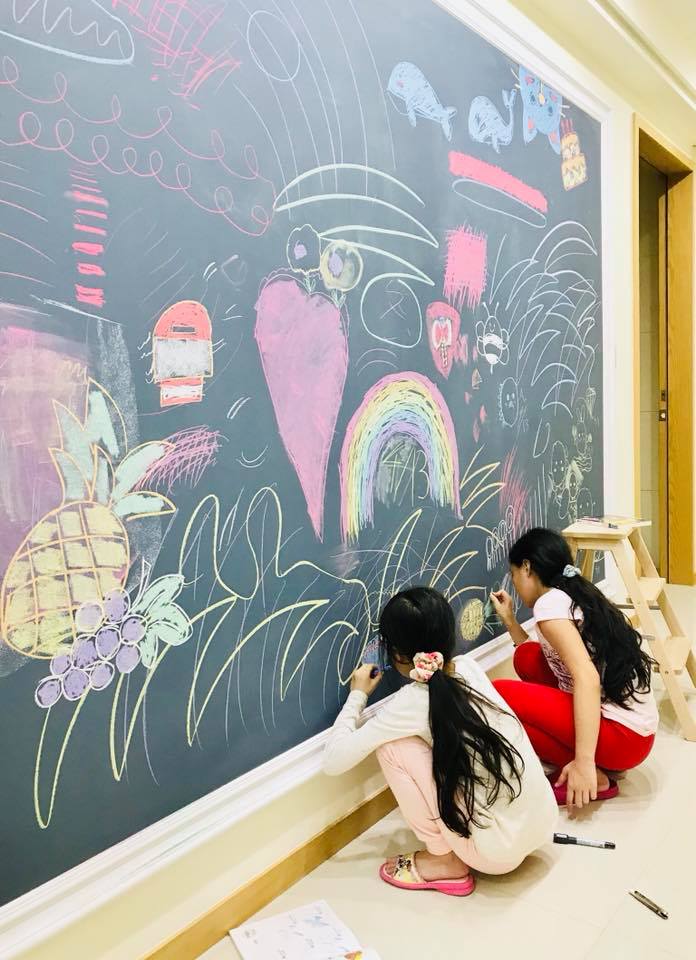 我家的牆壁每天都好精彩,完全不後悔做了一整片黑板和白板給孩子…