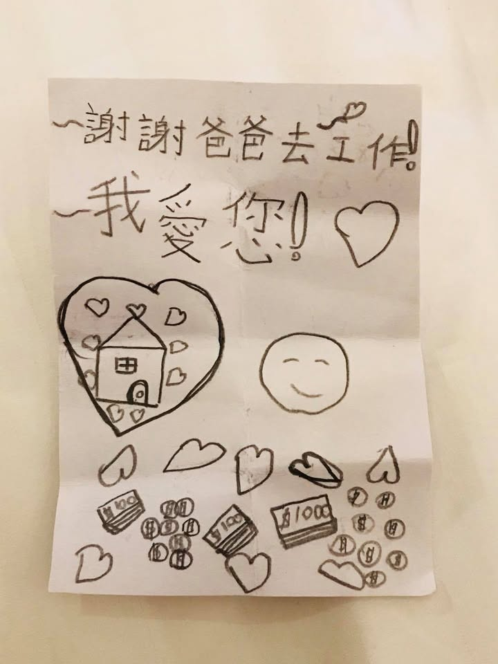 打開行李箱發現女兒偷塞進去的小卡片,覺得在外工作再累也值得!