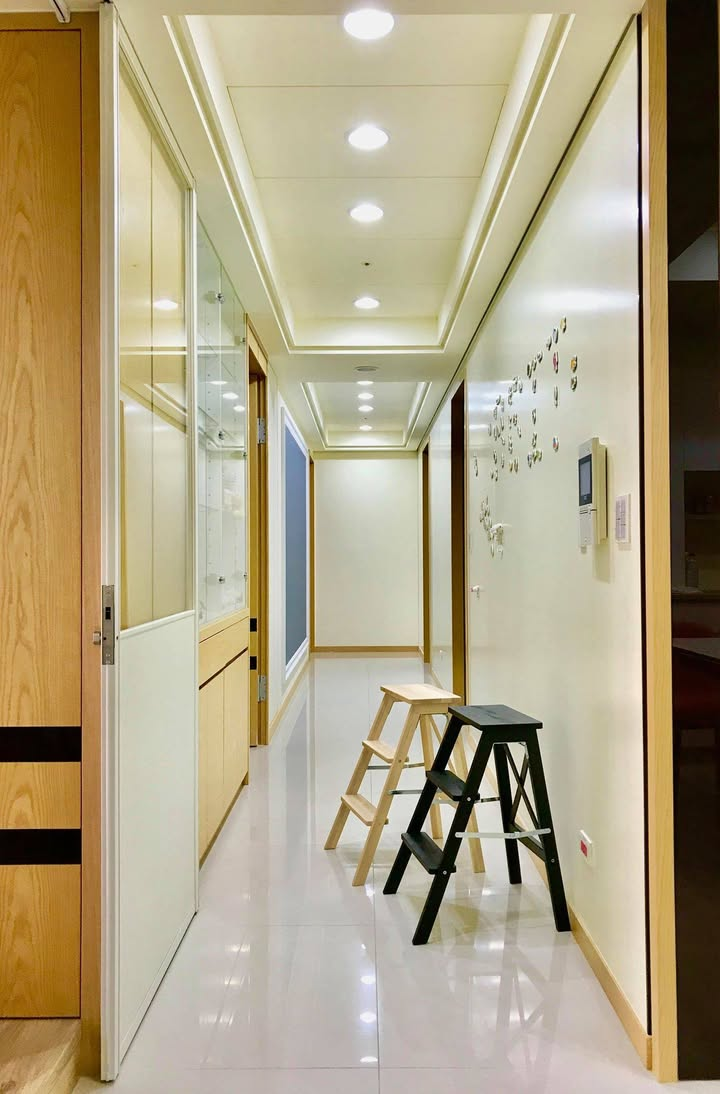 我們家真的是孩子的天堂,由餐廳往房間的長走道所有牆面全部設計成白板和黑板,讓三個女孩可以盡情揮灑,在牆壁上畫畫也不會被罵了,一點也不浪費走道空間,還能讓女孩們從事最愛的畫畫,相信這面超大白板黑板牆會是三千金們童年最棒的成長新夥伴 🙂