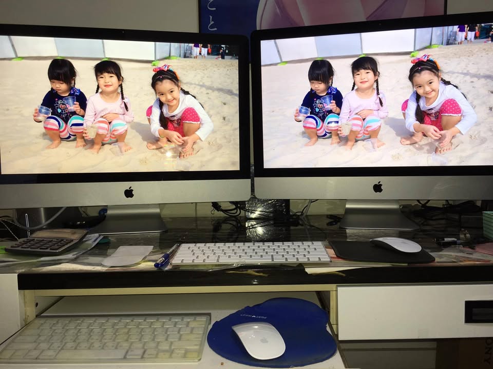 新電腦到囉,一切都是為了更好的照片品質,可以用更高效率處理相片啦,不愧是5k螢幕顏色真棒,兩台擺在一起細節和顏色都好很多,10幾萬張照片有新家了,以後來個雙機修圖好了 :)))