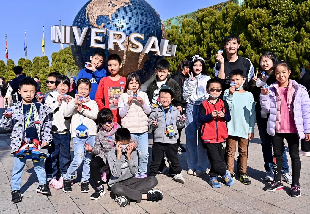 旅程的最後一天,帶著大家來環球影城前的大地球拍照,然後送給孩子們兩個驚喜。