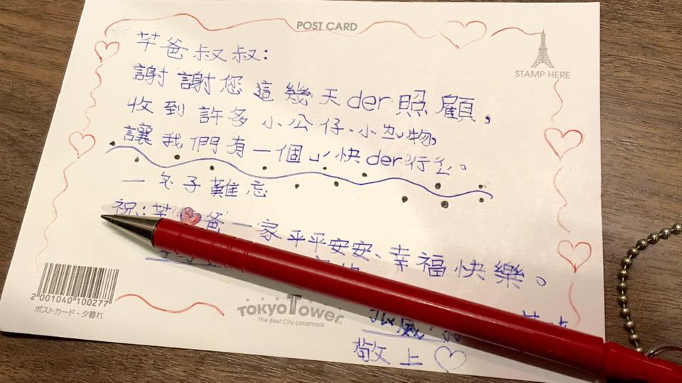 旅行結束前夕收到小朋友親手寫的卡片,瞬間充滿感動,疲勞立刻忘…