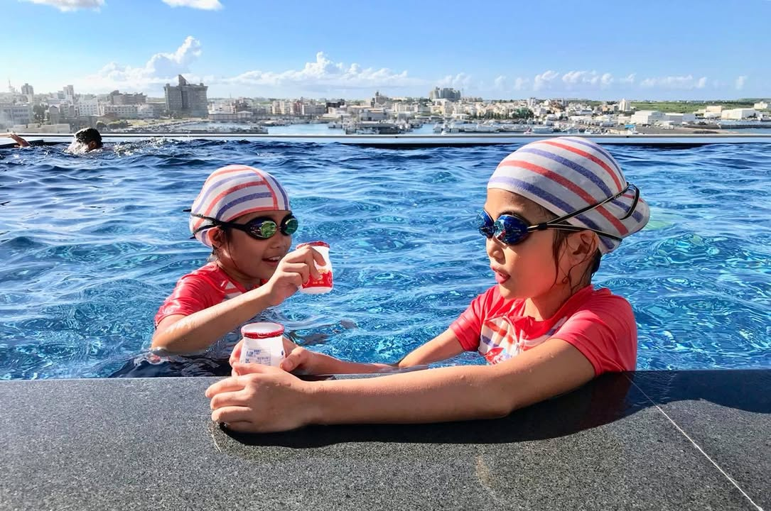 早上飯店游泳玩水,風景超美,想像自己就在國外一點也不會奇怪!