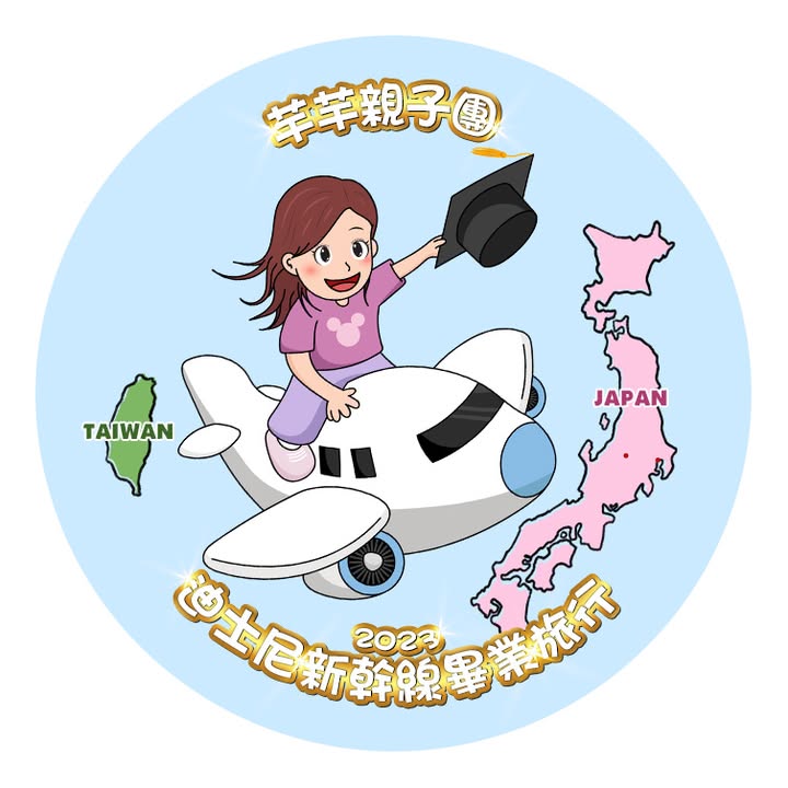 最近一連把數團的行前作業先慢慢準備起來,每天都在忙著找資料和校對,然後Jeff還是抽空把畢業旅行的胸章圖稿完成了,上了顏色字體滾金邊加上光芒,果真是限定的紀念品。