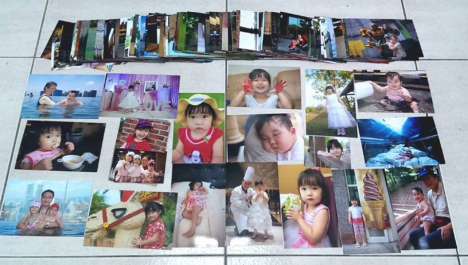 照片還是要洗出來,洗了300多張ㄧ字排開看心情好好,三個小女…