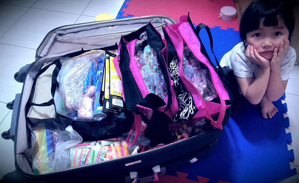 糟了,明天澎湖要發給小朋友的禮物就佔滿ㄧ個29吋行李箱了,那我的衣服要放哪@@