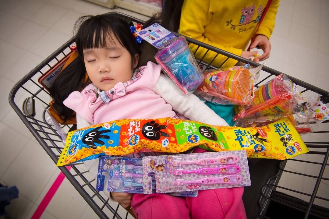 累到直接睡在購物車上,基本上已經是任人擺佈的狀態XD…