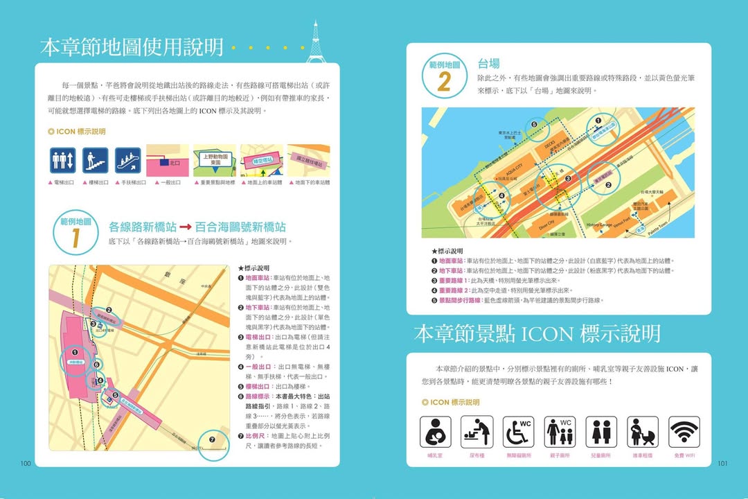 因為同一個車站名卻有不同的站體,很多人出了站光憑Google地圖也都還不知道如何走最順,因此芊爸的書很重視”地圖”,提供了不同路線車站到達景點「該走哪個出口」、「該左轉還是右轉」、「此出口是否有電梯或手扶梯還是只有樓梯」,這讓使用這本書的朋友,可在到達時很輕鬆快速的選擇出站到達景點的路線。
