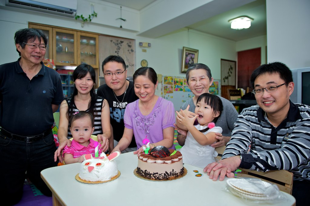 芊芊說三歲要吃三個蛋糕,於是………,爸爸又去買了…