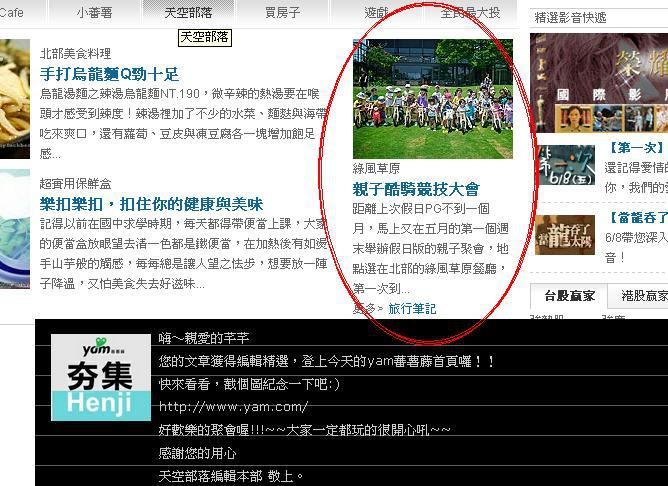 超盛大的酷騎親子聚會果然上蕃薯藤首頁啦! 網誌:http://blog.yam.com/Watson08/article/49717674