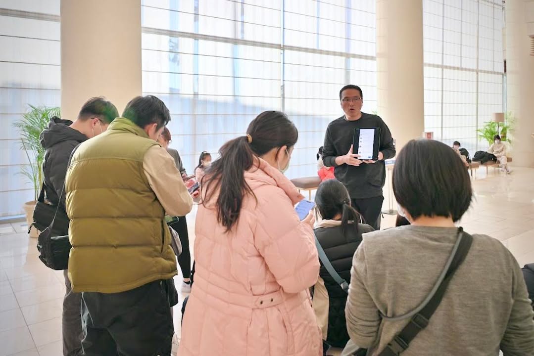 迪士尼團越帶越進步,以前是拿著手機講解app使用方式的,現在進化到用大螢幕的iPad,讓家長更清楚看到操作。