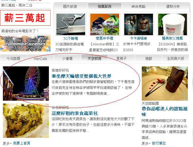這次爸爸的文章是登上蕃薯藤的首頁喔!好棒^^