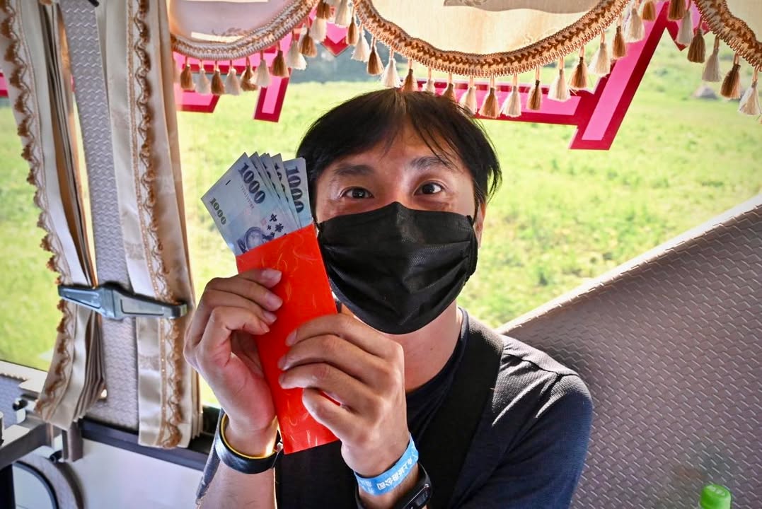 這次出發前就已預先準備好紅包袋了,也沒跟Jeff說,泛舟完回到遊覽車後,在團員的見證下,把這個萬元紅包送給Jeff,除了該有的小費外,我覺得最認真拍照的Jeff值得這樣的鼓勵。