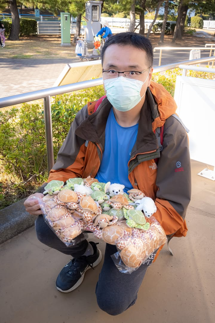 有一天逛商店看到了這款超精緻的海龜沙包,當場買了好多起來放,疫情後出國團幾乎每一團,遊覽車上的摸彩我都會拿一隻出來抽,當初會買這麼多海龜沙包的用意很簡單,一來台灣的小琉球是有機會看到海龜的地方,二來我很喜歡的民宿 蘇宅旅店 經理也是支持並參與我的親子團多年的老朋友,所以抽獎之餘都順便幫忙推廣小琉球的好和蘇宅的棒。