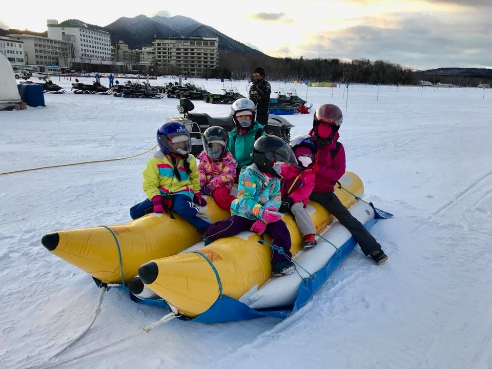 開心玩雪啦,進入雪國不用特地搭車搭新幹線才看得到雪,每天走到戶外就是一大片白色世界,冰上香蕉船、冰上摩托車、冰上越野車、冰上釣小公魚,釣完現炸來吃,屈斜路湖遇見北海道最美的雪白大天鵝,徒手就可挖出溫泉的砂湯,雖然玩到手指頭冰到不行,但孩子們依然開心不已,入住的阿寒湖畔飯店直接將湖邊雪景盡收眼底,冬天帶孩子出門雖然辛苦,但美景當前與孩子們共享還是值得!