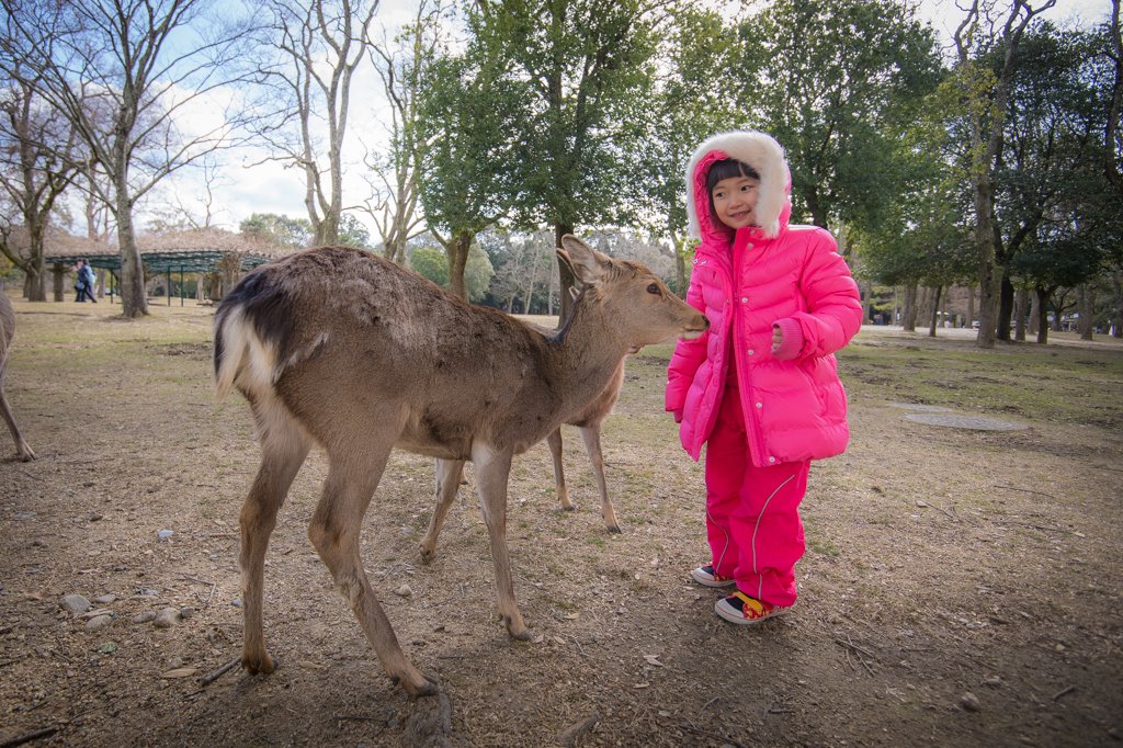 雖然奈良鹿為了吃可以一直盧在遊客身邊,但我們家有以一擋百的亭…